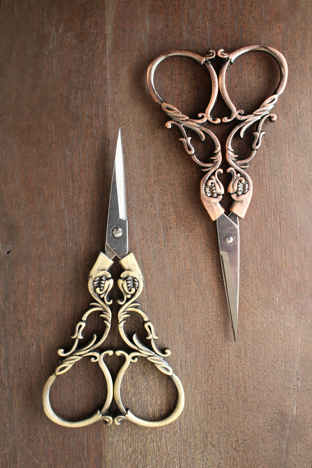 Embroidery scissors with high quality stainless steel blades and beautifully engraved whimsical handles. Perfect for snipping yarn tails and threads, these little beauties would make an elegant addition to any knitting bag or sewing basket. Sharp points allow for delicate cutting and trimming. Arrives individually packaged in 5 1/4 x 2 1/2" x 3/4" kraft brown box with clear lid.