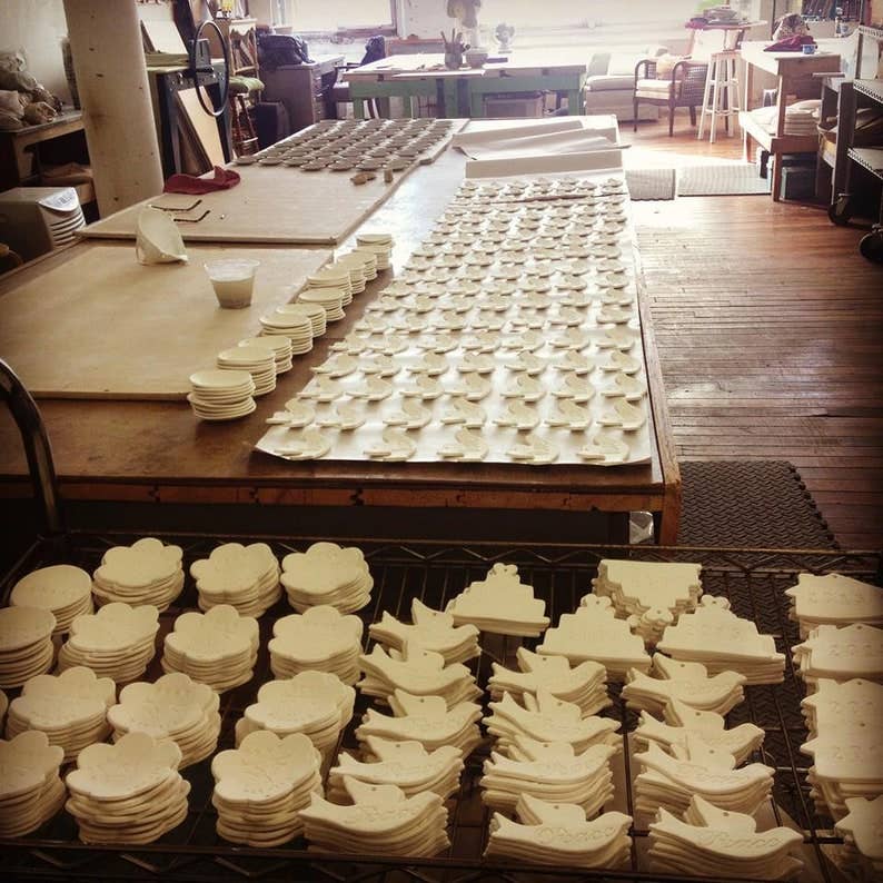 I used locally sourced clay to make them. They are hand cut, stamped, sculpted and slowly dried before it's first kiln firing.