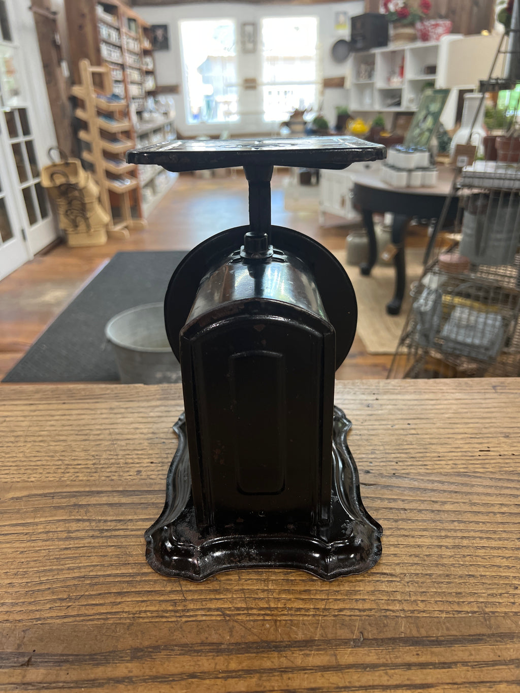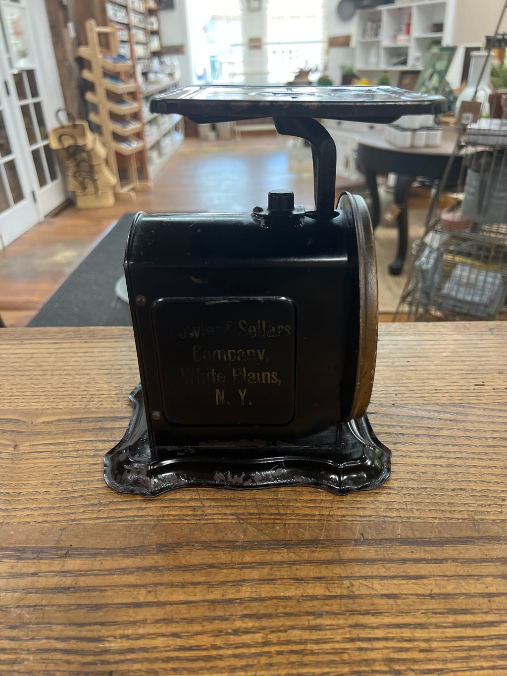 Black Family Scale… Advertising for Fowler + Sellars Company White Plains, NY…Awesome patina and perfect for a candle or that special thing in your collection. 9” Tall by 7.75” Deep - See pics.