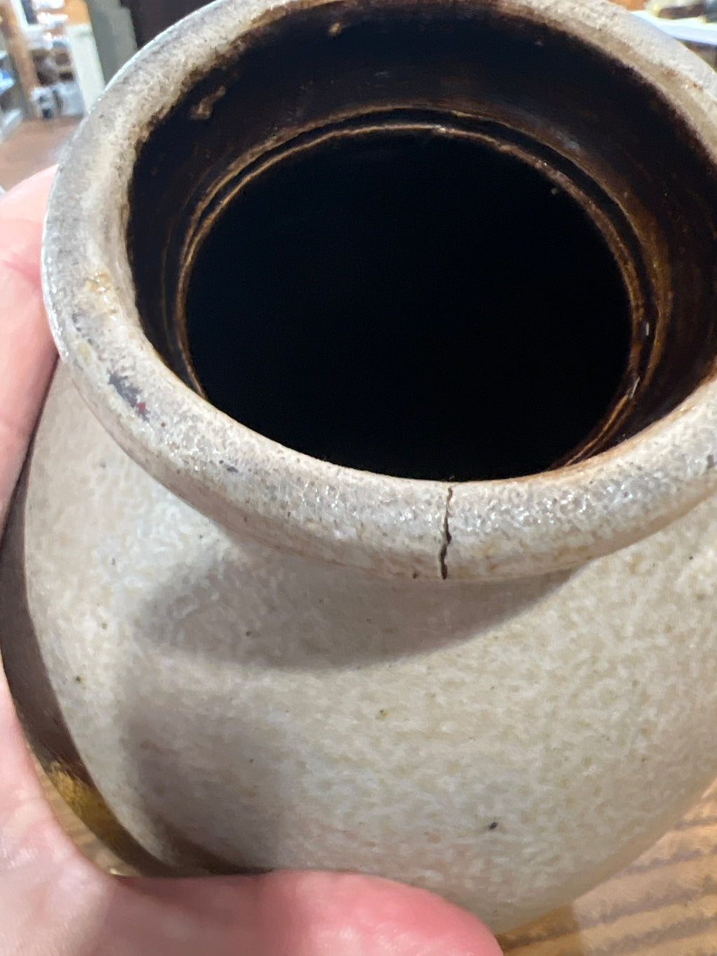 Some hairline crack on rim of jar… Please see pictures for condition…9.5” Tall x 5” Round Bottom