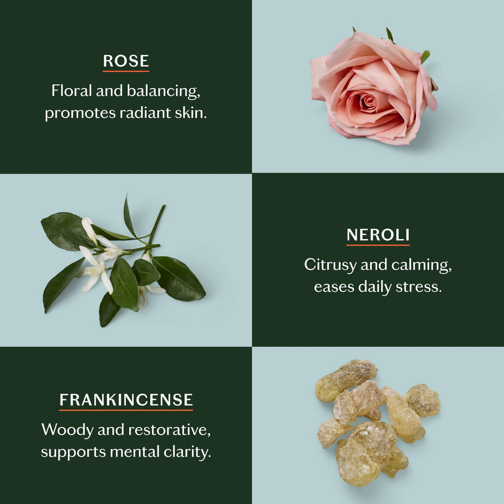 The Daily Stone is a light floral blend of rose, frankincense, and neroli.