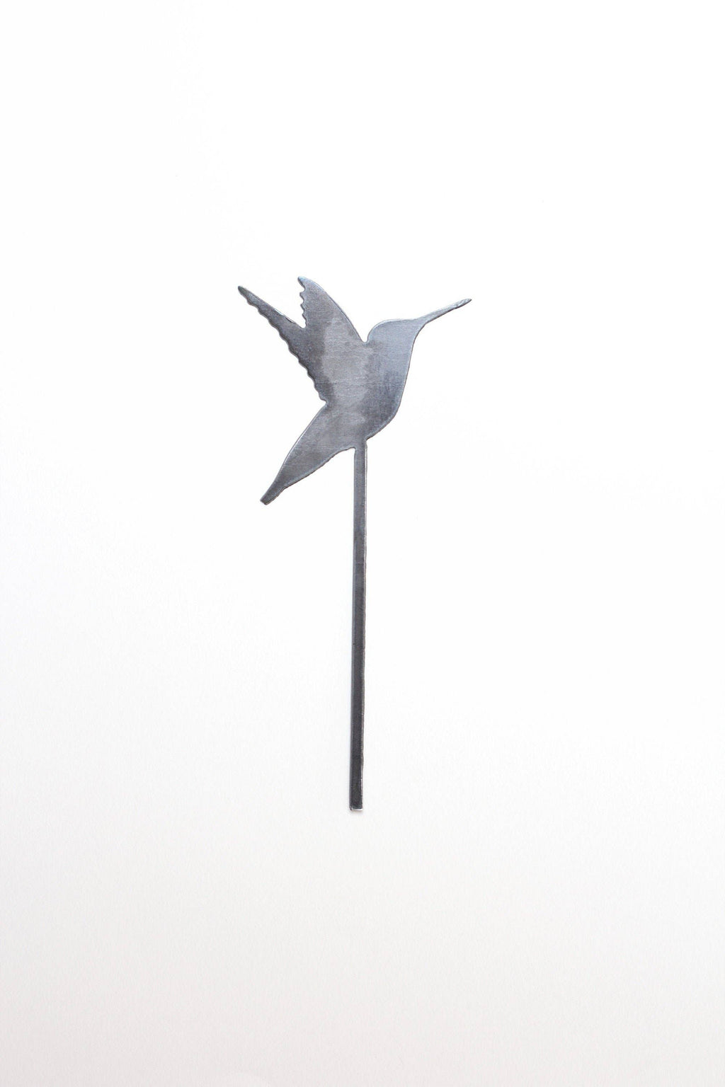 Stake measures 9 inches tall, hummingbird nose to tail is 5 inches total.