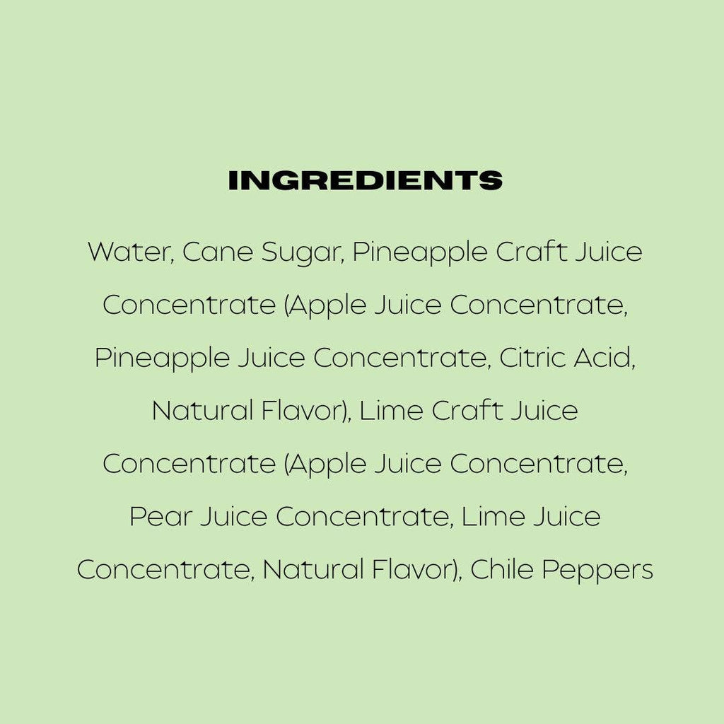 This all-natural mixer combines sweet pineapple, tart lime, and a warm kick of spicy chile peppers for a well-rounded flavor profile.