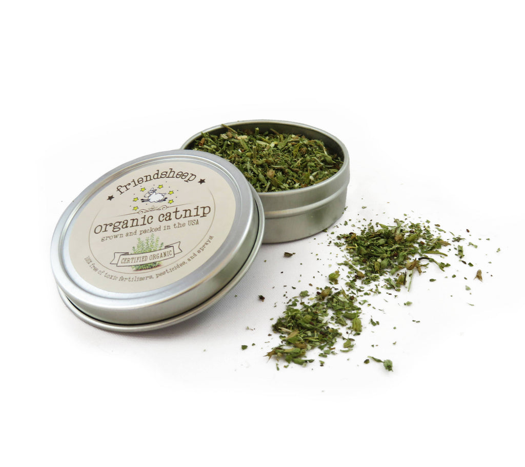 Reusable recyclable tin contains 100% Certified USDA Organic Catnip. Grown and packed in the USA. Harvested fresh at the highest peak of season, ensuring best plant quality for catnip essential oil. 100% free of toxic fertilizers, pesticides and sprays. Treat your cat to the finest USDA certified organic catnip! While cats in the wild get plenty of stimulation from tracking down prey, indoor kitties might need some motivation to bring out their hunting instincts. Catnip is known to give kitties this burst of energy. Lightly sprinkle it on scratchers, on kitty caves, beds, or on their favorite toys, and enjoy watching them purr, roll, meow and play for hours. A pinch of this irresistible Organic Catnip will go a long way! Regular Tin measures: 2.5"x 2.5"x 0.9", contains 1/3 oz Organic Catnip.