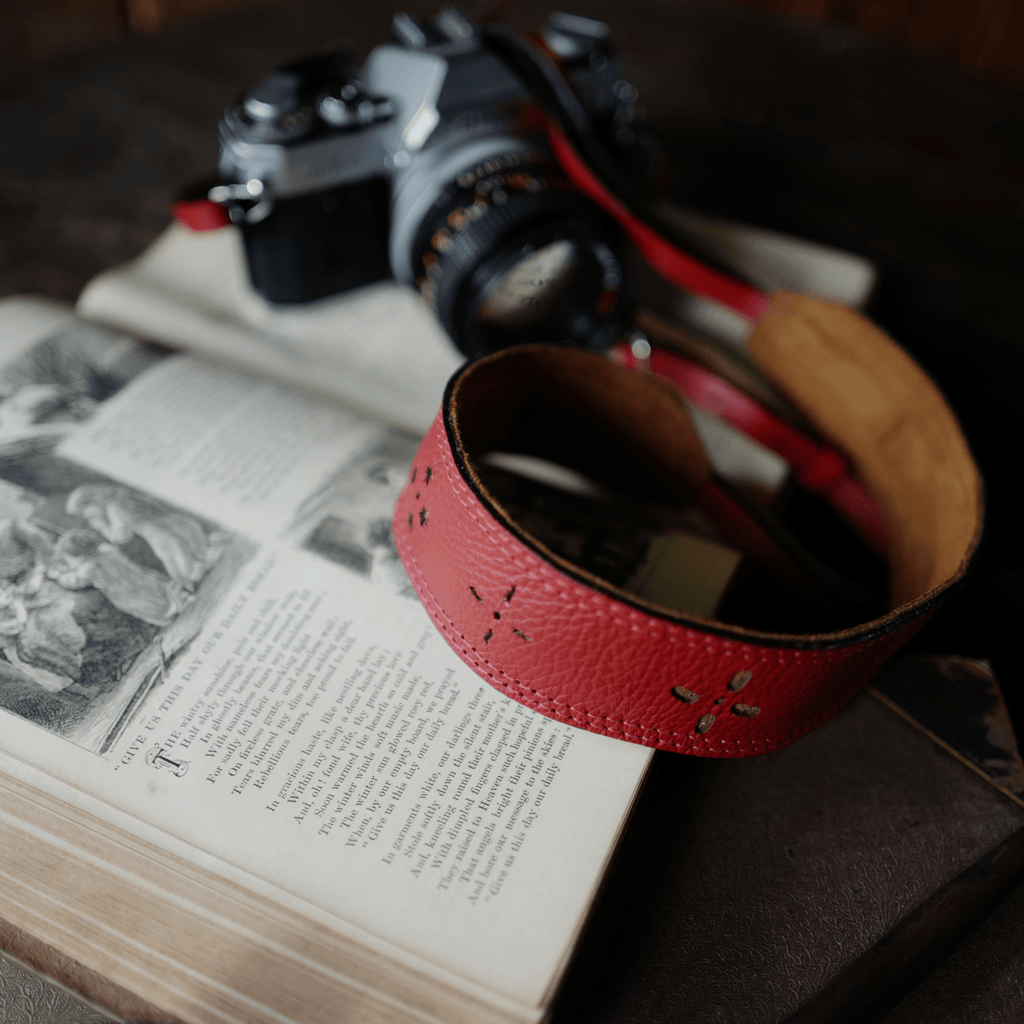 Our Handmade Leather Red Camera Strap is a great option.