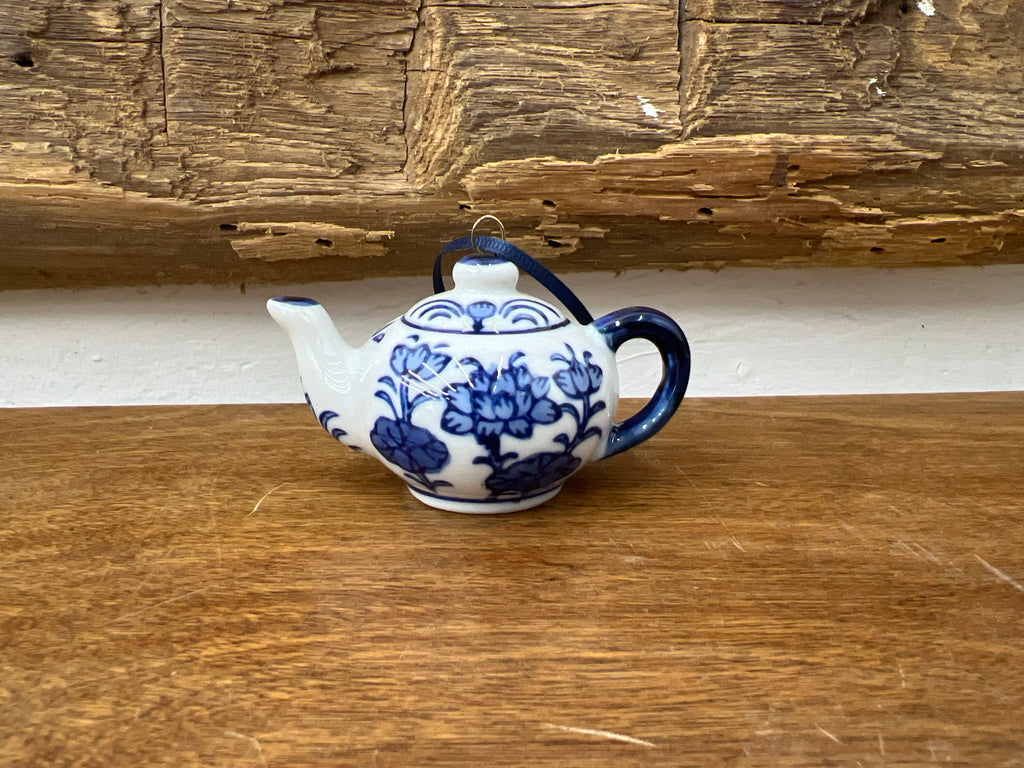 Stoneware Vase/Teapot/Teacup Ornament with Blue Ribbon, 4 Styles