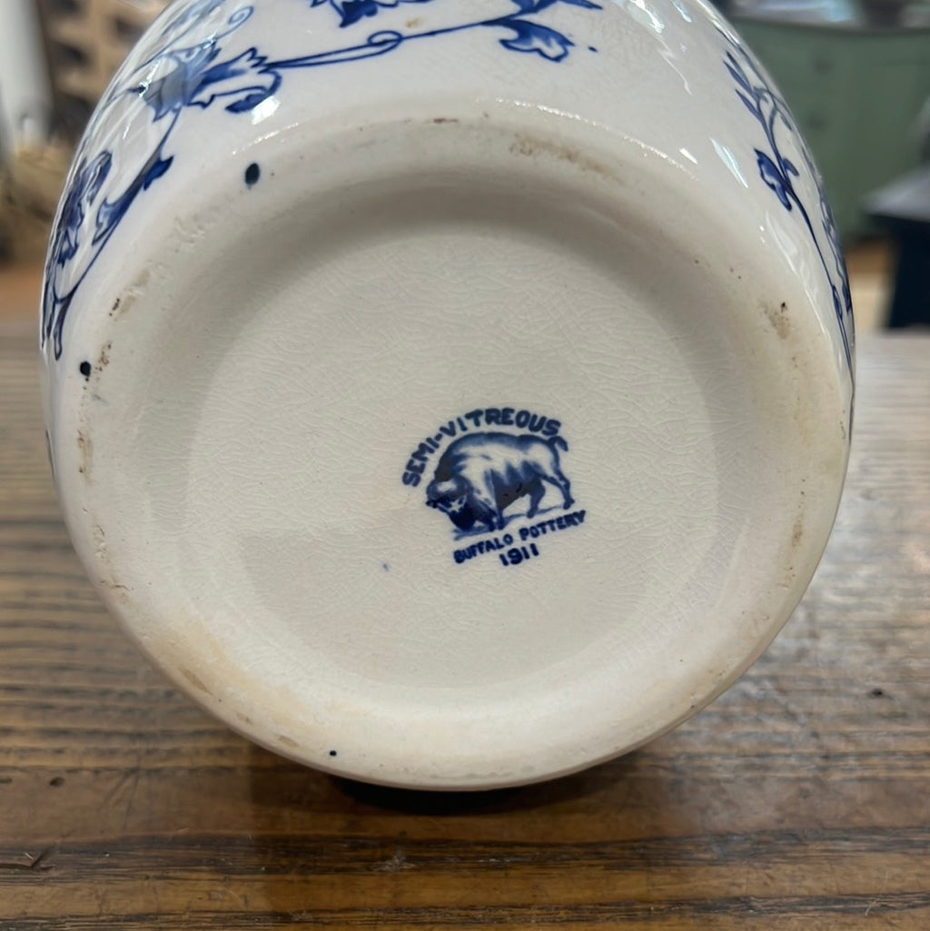 Antique Kitchen Semi Vitreous Canister TEA Blue Onion Jar….NO LID