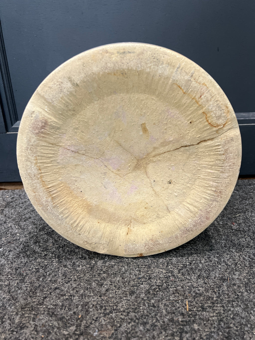 9.25” High by 9.5” Diameter ….Fair condition for its age. There are a few hairline cracks on bottom and one up one side of crock… See all pics.
