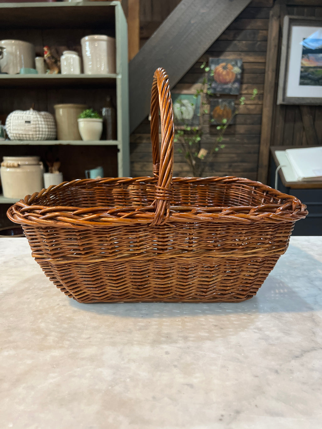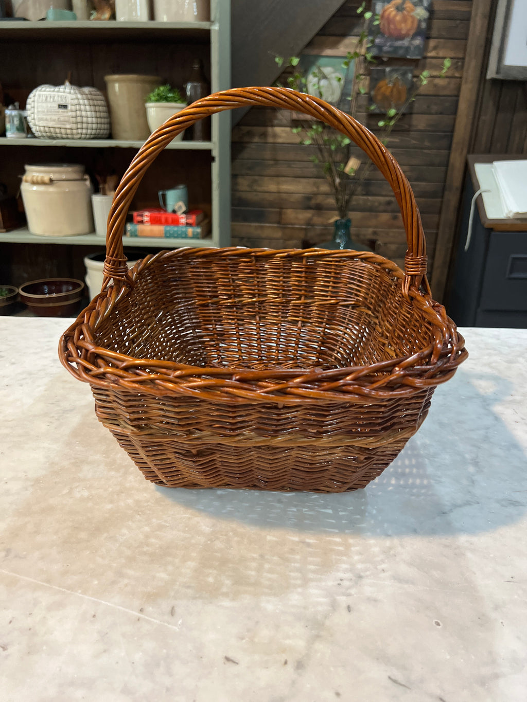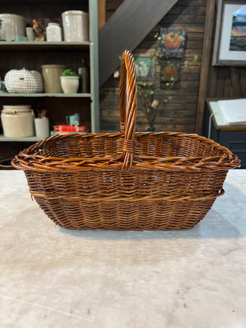 Hand Woven Basket with Handle.  Harvest style basket for herbs or eggs…14.5” Long x 11.5” Wide x 11.25” Tall