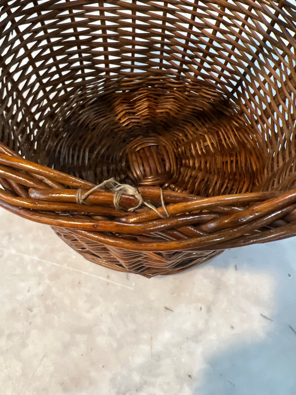 13” Tall x 9.5” Diameter Bottom...Old repair made with string on rim of basket...