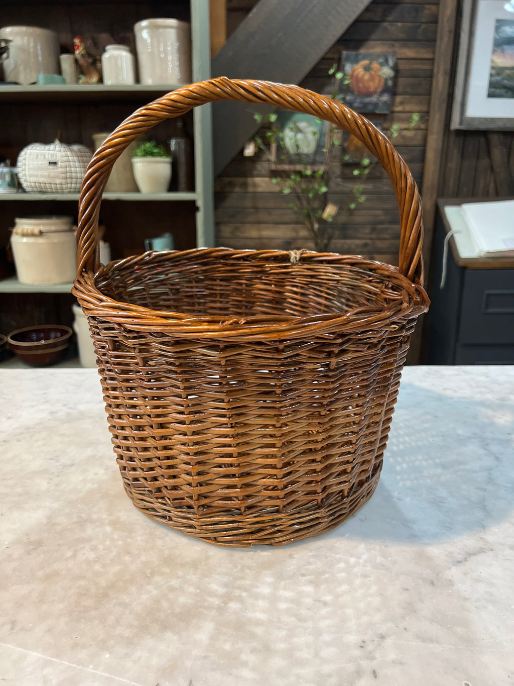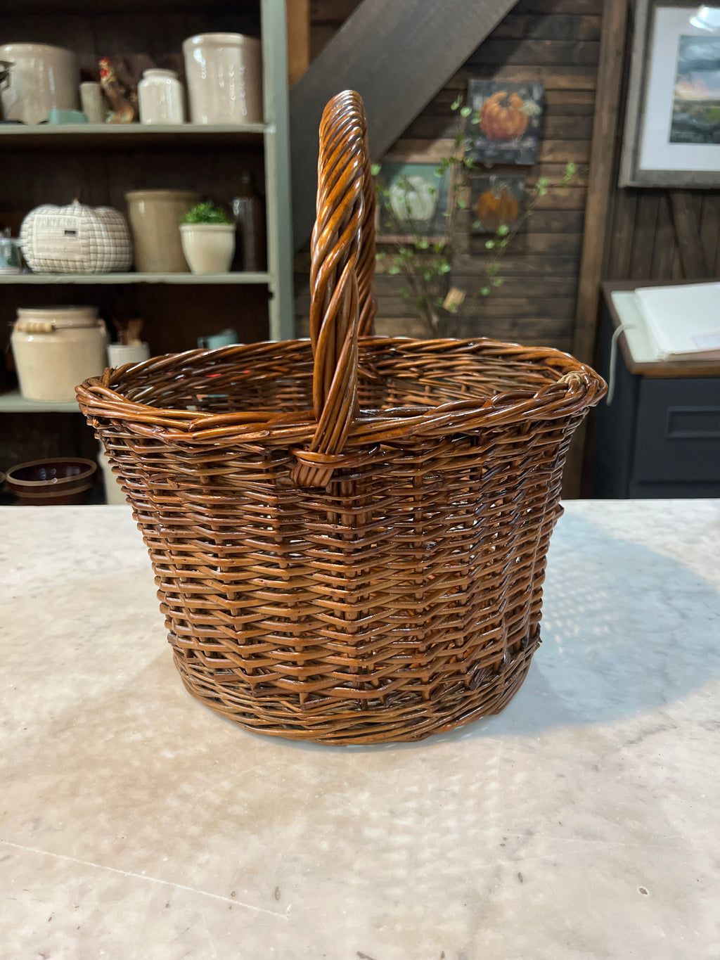 Vintage Woven Wicker Handled Gathering Basket
