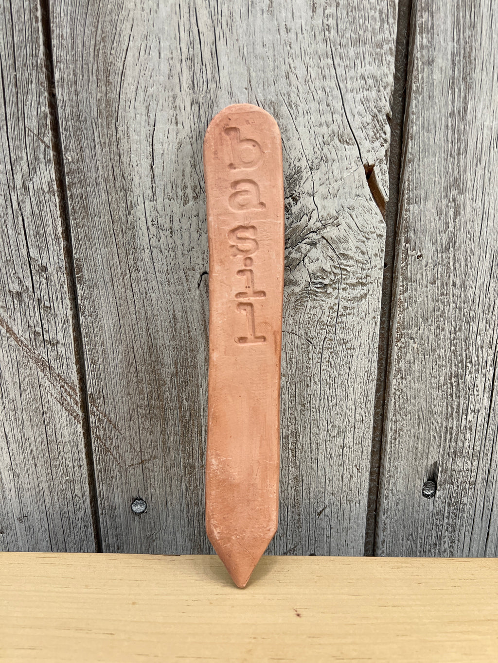 Garden markers are approx. 6" long, 1.25" wide... Each piece is hand rolled, cut, stamped and an iron oxide wash is applied to give a contrast and rustic appearance...
