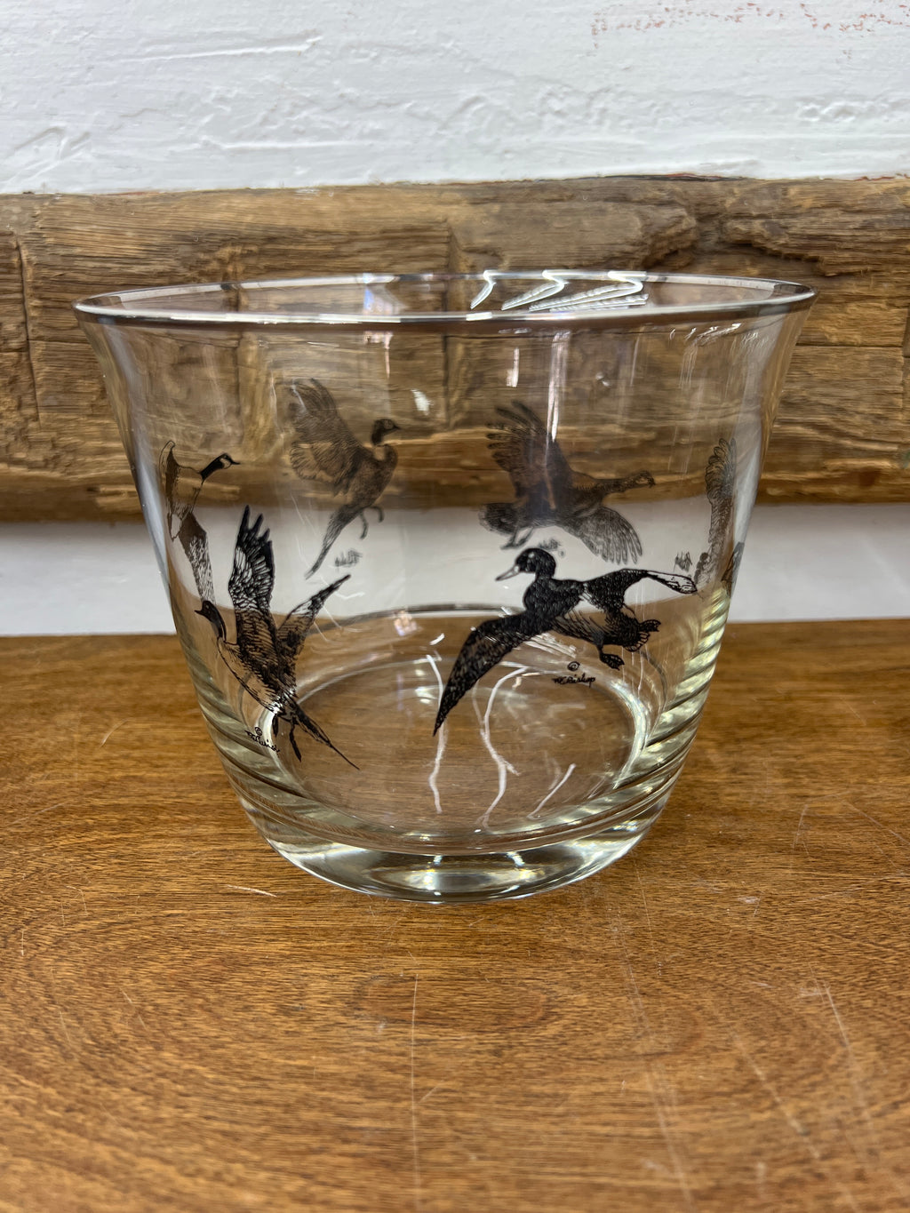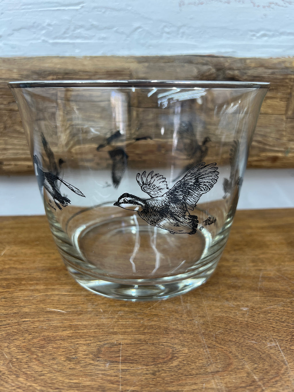 Vintage Mid Century Richard Bishop Wild Fowl Design Glass Ice Bucket