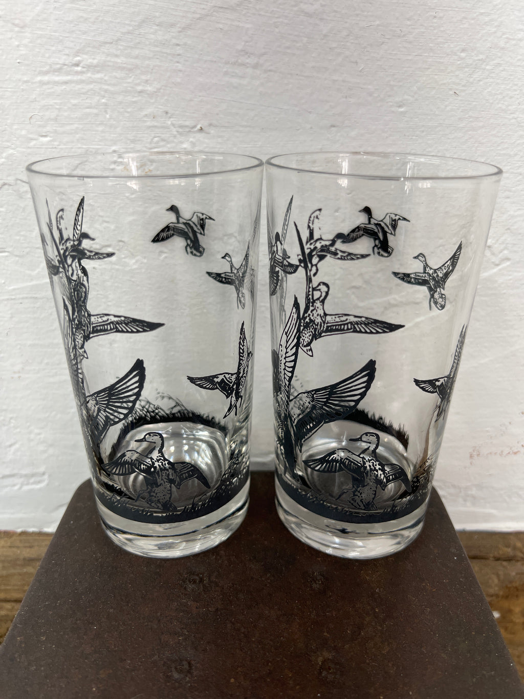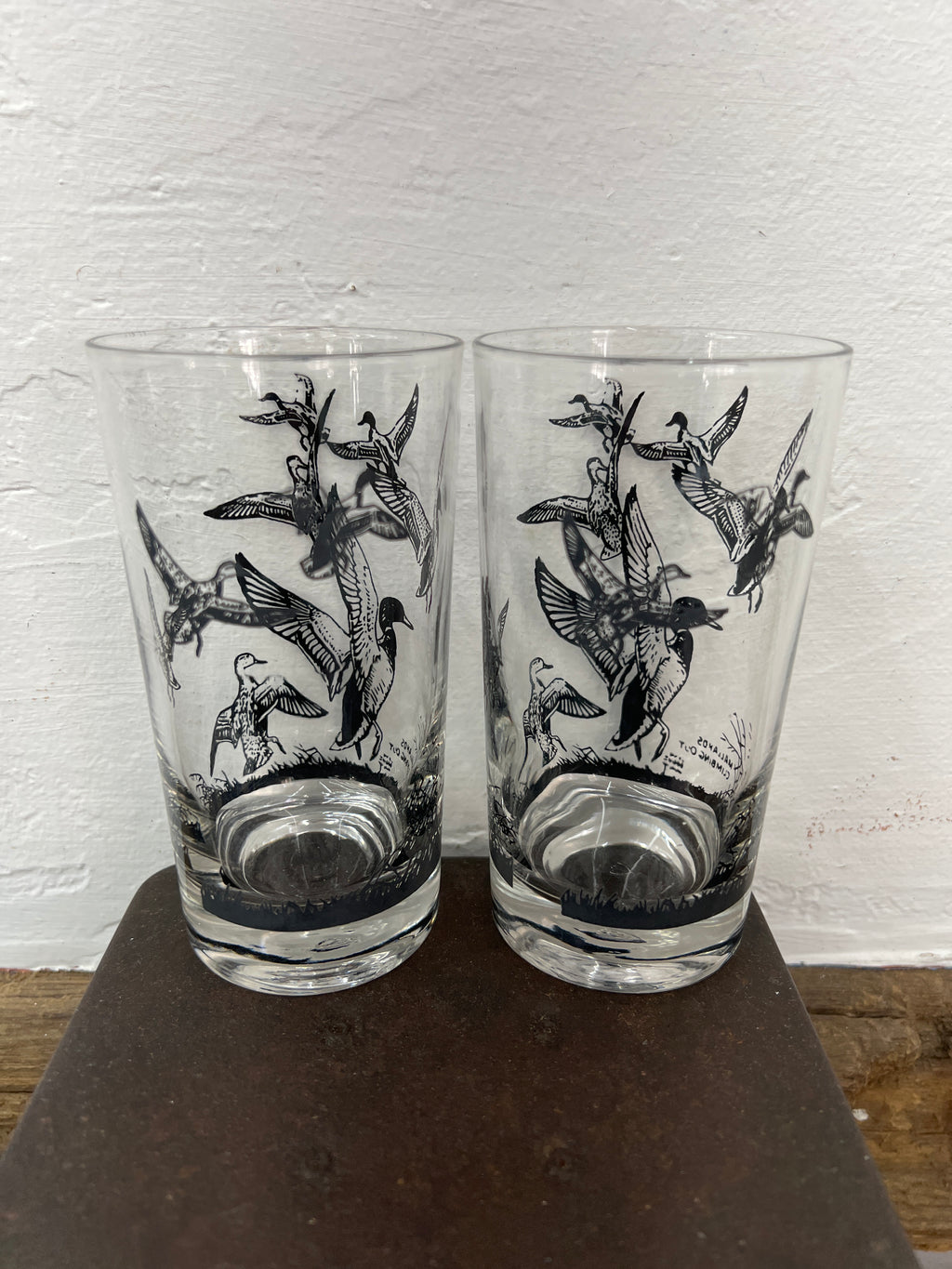 Vintage Lynn Bogue Hunt Game Bird High Ball Glasses Set of 2 - Mallards